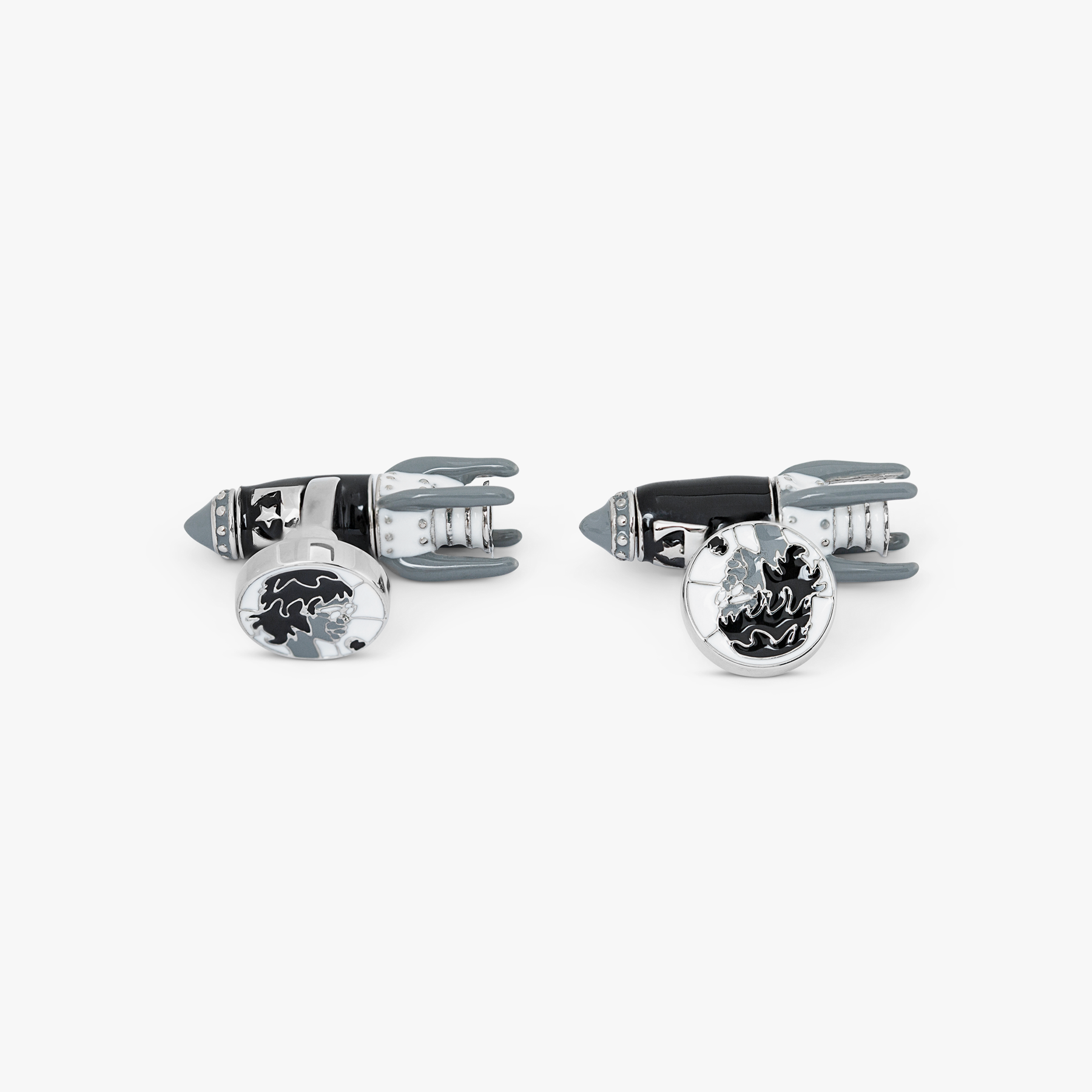 Rocket Man cufflinks in black enamel White Bronze plated