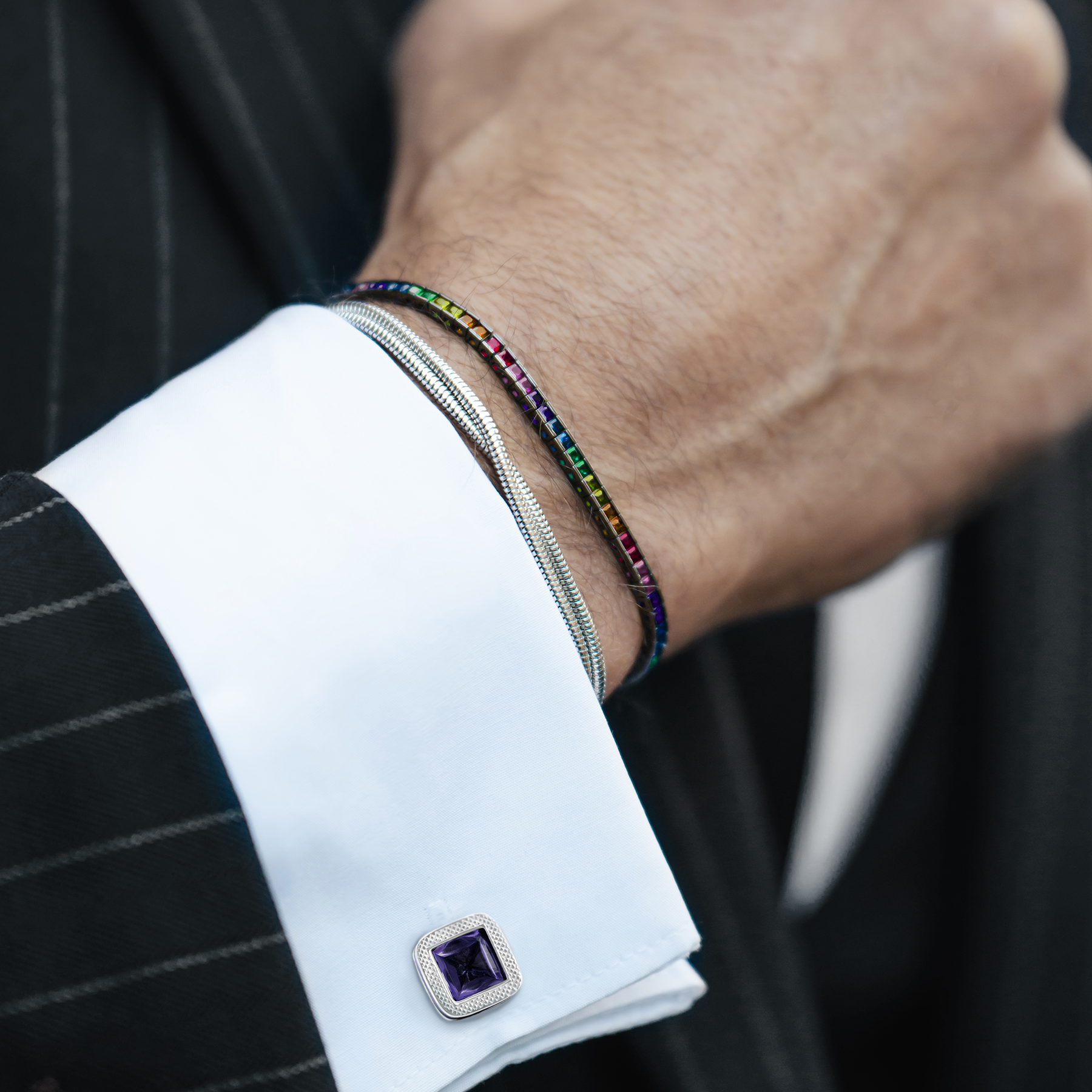 Quadro Tennis Semi-Precious BraceletBlack Rhodium Plated Sterling Silver With Multicolour Nano Stones