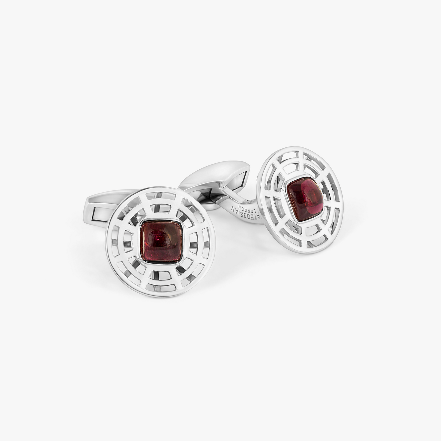 Satellite Cufflinks in Rhodium & Red Tourmaline