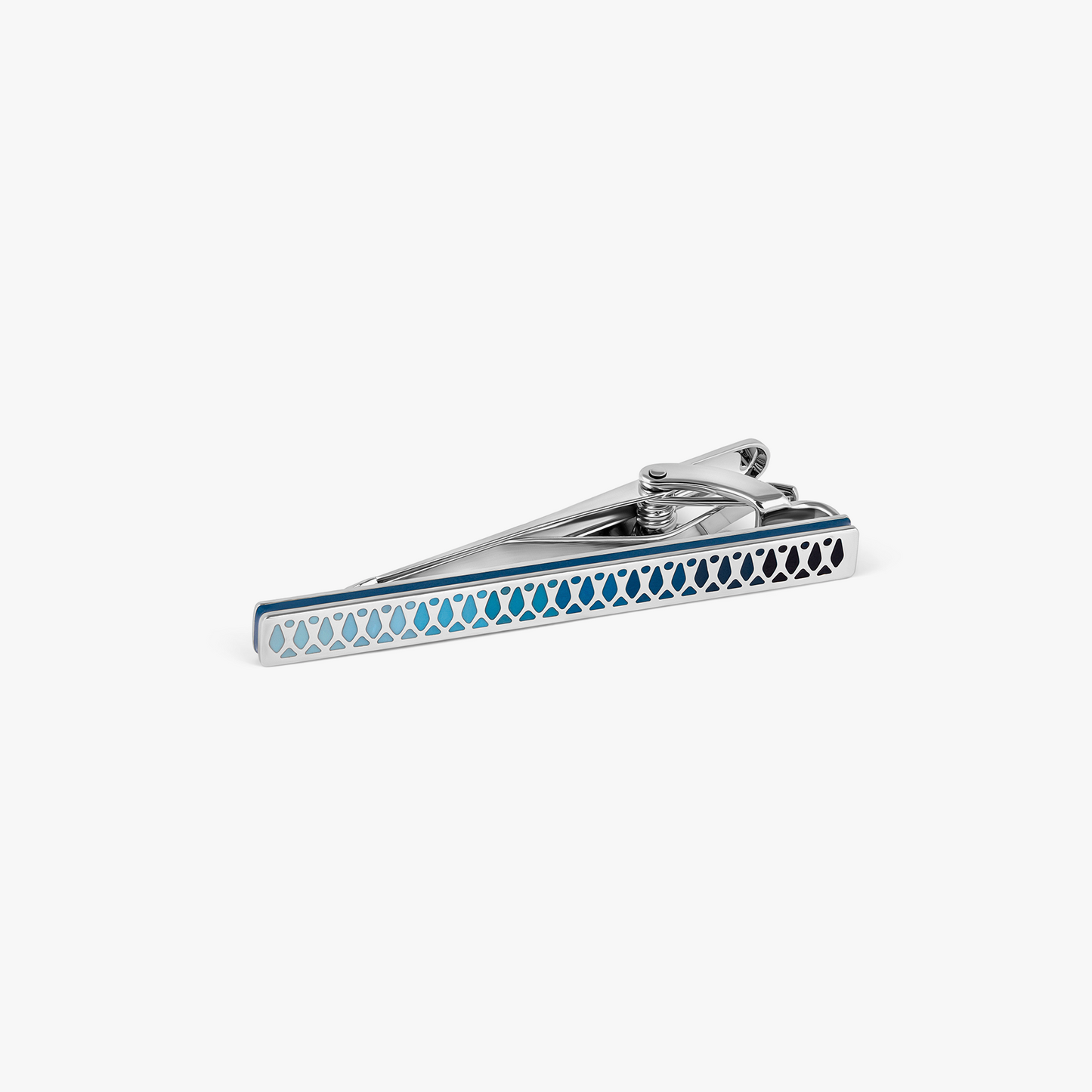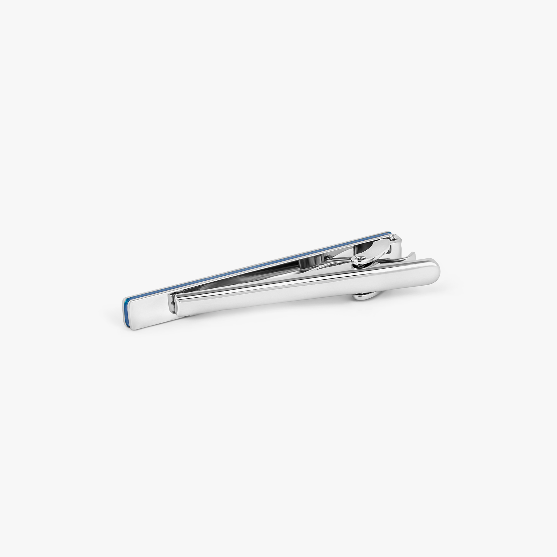 THOMPSON Cairo Leaf Tie Clip In White Bronze plated Stainless Steel With Blue Enamel
