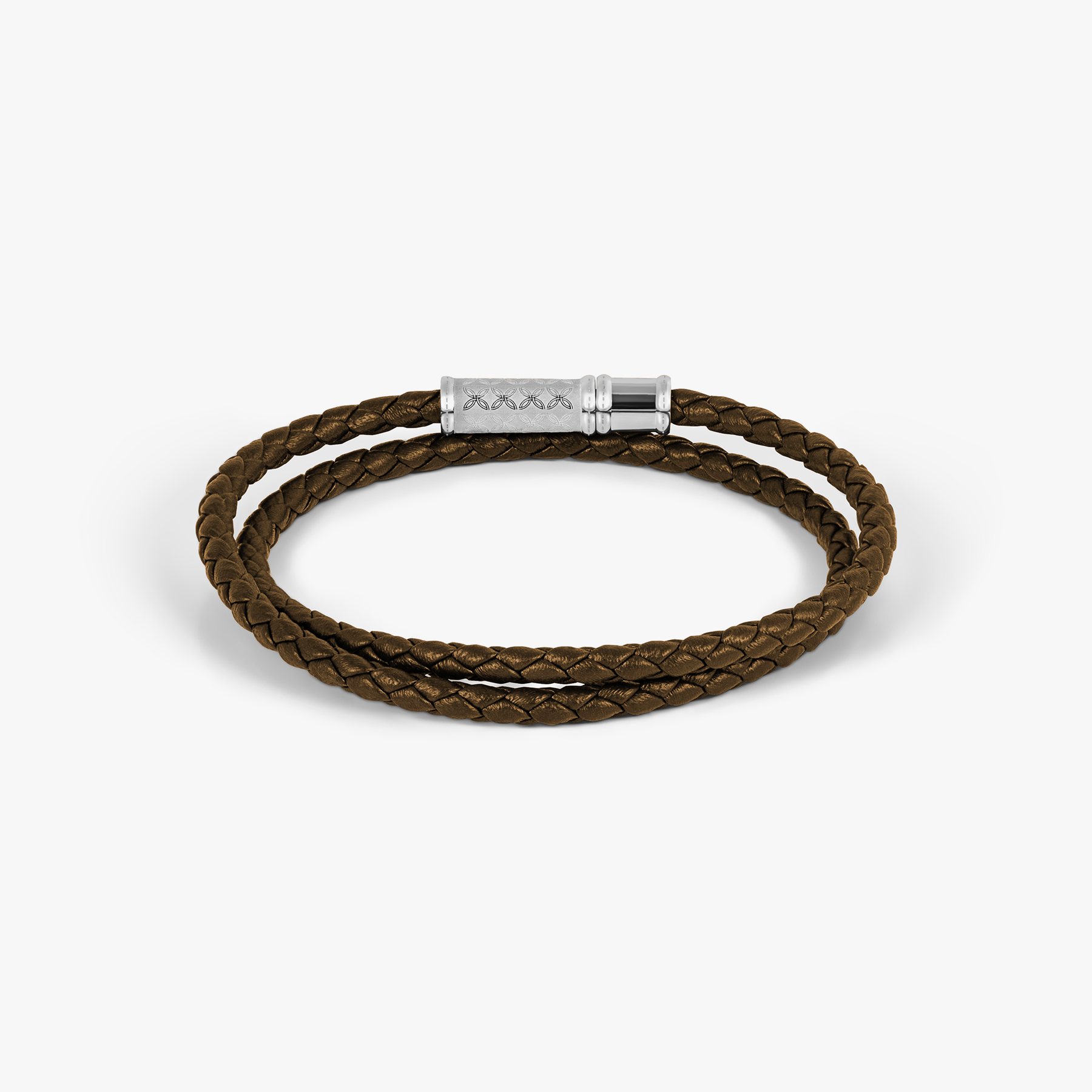 THOMPSON Lucky Clover Double Wrap Bracelet In Brown Leather